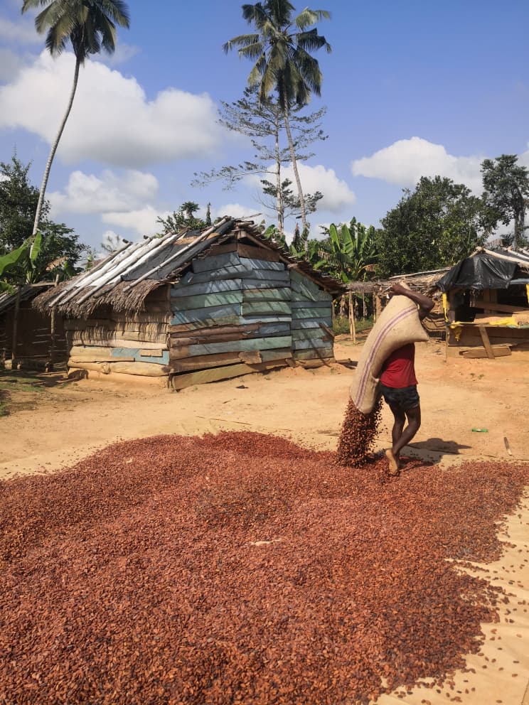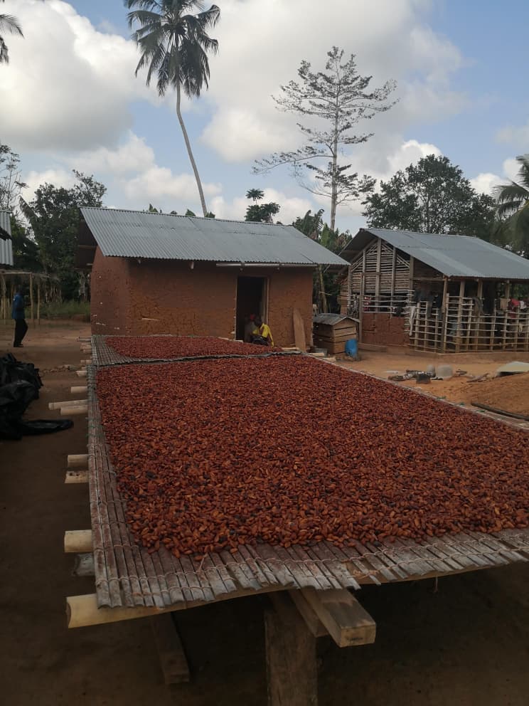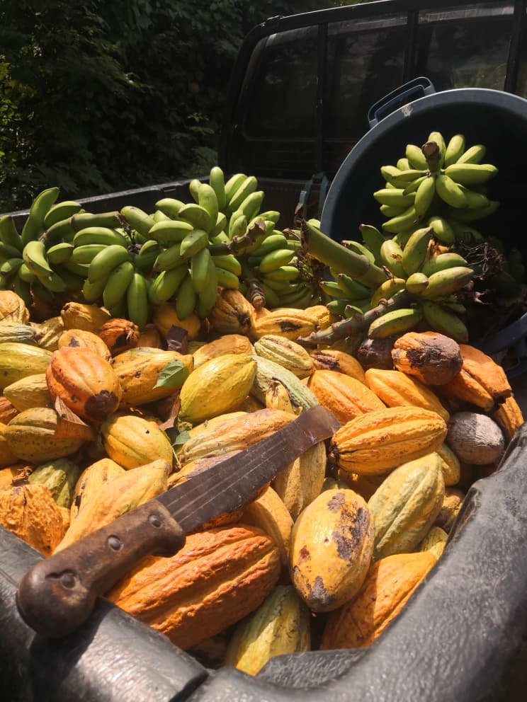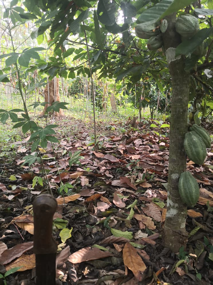 In 2018, we secured 20 acres of land at Agona Bobikuma and planted about 8,000 cocoa seedlings. Cocoa farming is delicate, so we replant every rainy season to replace seedlings lost to heat. Today, the farm has a strong cocoa canopy and produces pods every two to three months.